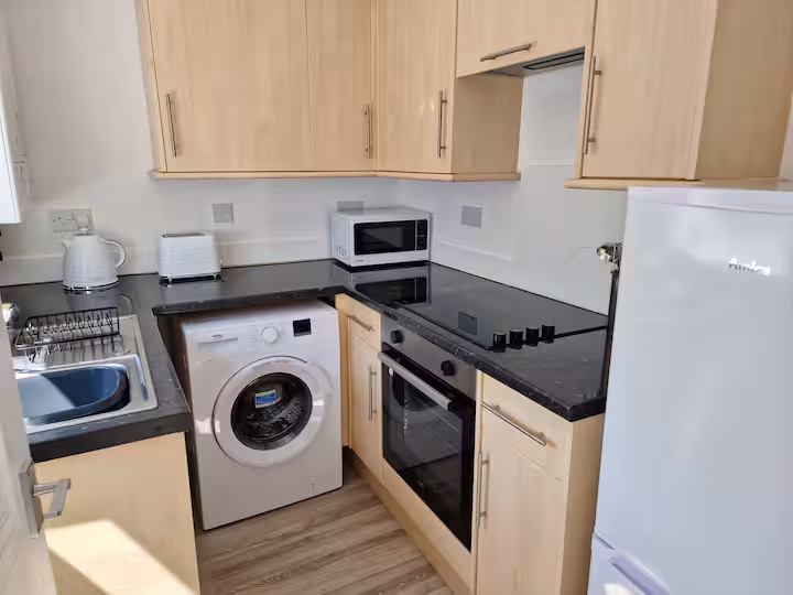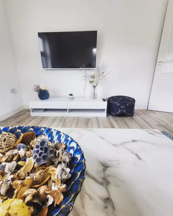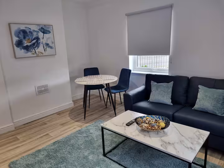 The apartment has just been refurbished and everything inside it is as new. Featuring a 50" Philips Ambilight Smart TV with Netflix and Amazon Prime (N.B no live TV). Fully equipped kitchen, bedroom with a double bed and an ensuite.