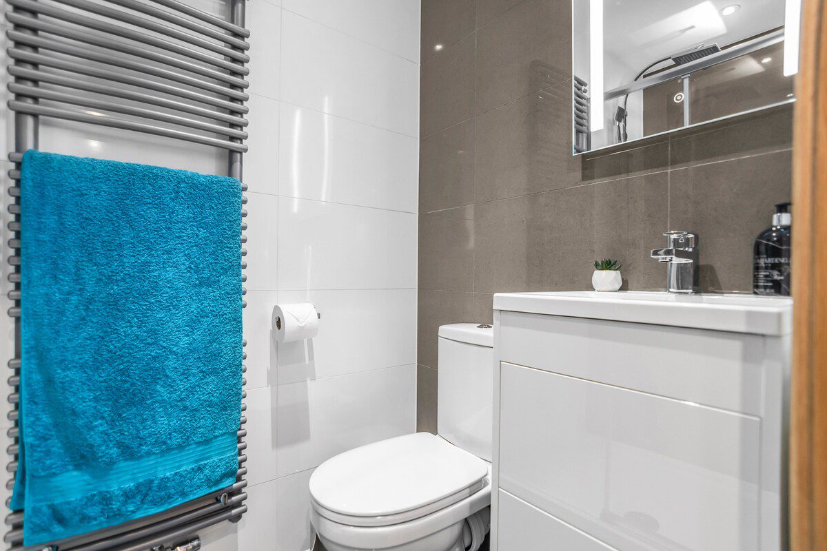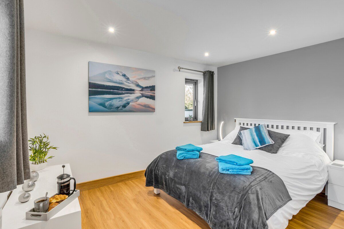 Two Double Bedrooms: Both rooms are furnished with high-quality, hotel-grade mattresses. The slightly larger room features a King-size bed, while the second room offers a comfortable double. Both rooms have luxurious ensuite shower rooms with demister mirrors and an abundance of Egyptian cotton towels.