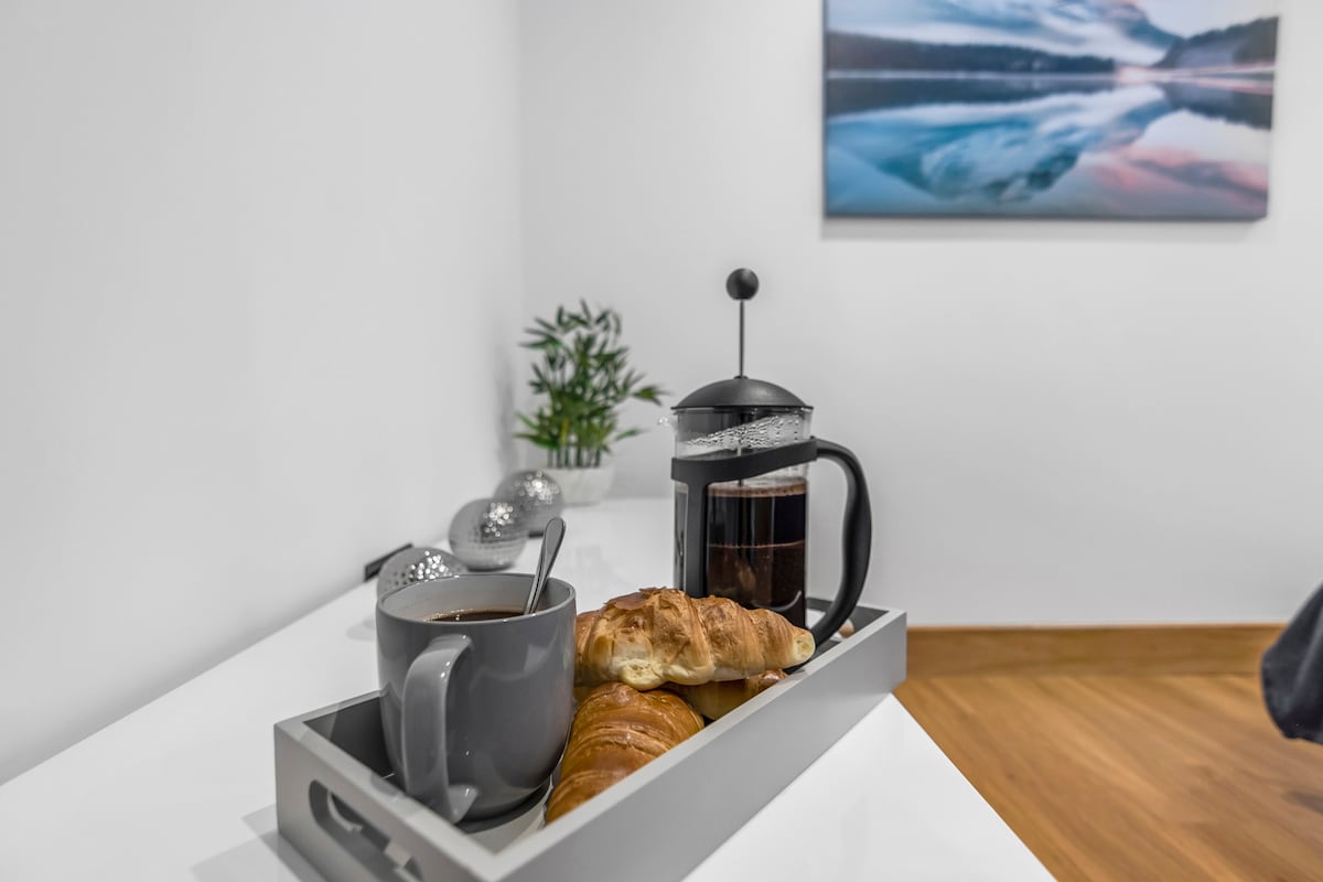 Fully Equipped Kitchen: The modern kitchen is fully integrated, with everything you need to prepare meals, from a range of appliances to a four-seater dining table for relaxed meals together.